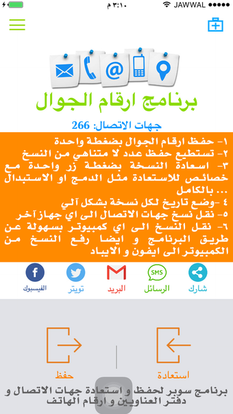 Om ارقام الجوال - برنامج حفظ و تحويل أرقام الاتصالات för iPhone